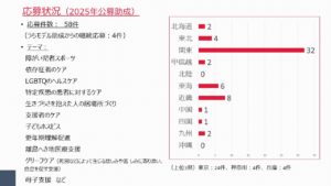 2025年度は、全国から58件のご応募をいただき、そのうち7件(助成総額1,826万円)が厳正なる選考の結果、助成対象プロジェクトとして選ばれました。